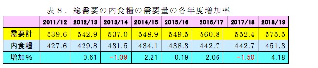 北朝鮮では近年餓死がある程度発生していると報道されているが、北朝鮮は否定しているので、需要は人口増加率0.55%ずつ増えるはずであるが、上記の表では需要の増減が人口増加率と全く比例しておらず、その年の国連機関と北朝鮮当局とのかけひき次第でさじ加減しているものと見られる。